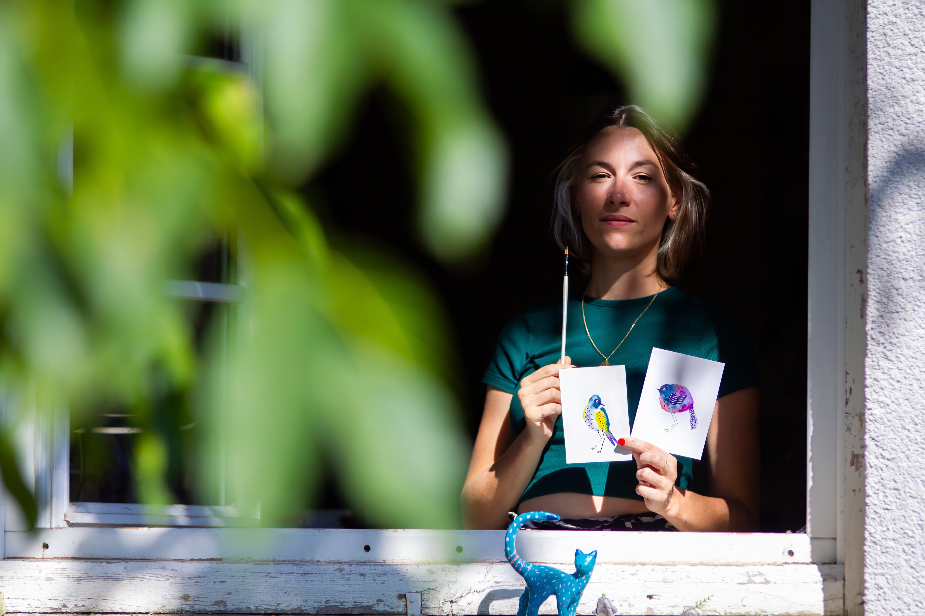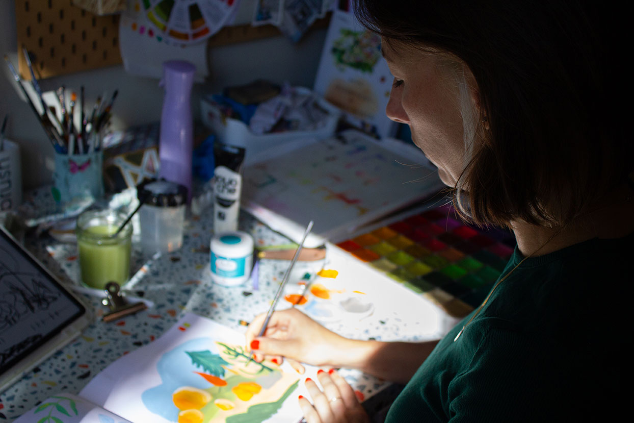 Petite âme bohème résidant à la campagne, je puise mon inspiration dans la nature qui m’entoure. Je peins avec passion dans le doux bazar de mon atelier où mes créations, modestes mais sincères, prennent vie à travers mes pinceaux, dans la compagnie silencieuse de mon chat Newton.