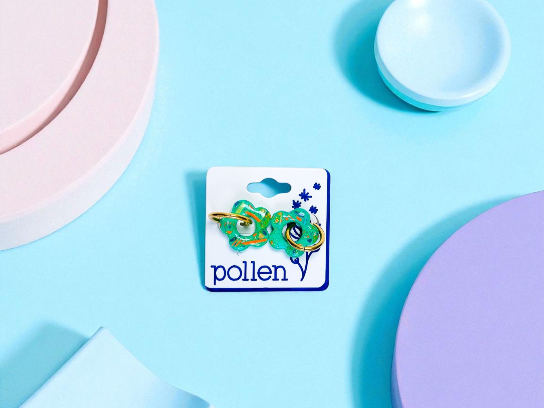 Ces boucles d’oreilles en forme de fleur sont coulées à la main en Jesmonite, un matériau à la fois écologique, léger et solide. Chaque paire est unique, poncée et montée une par une dans mon atelier.